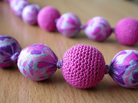 Как-то купила в «секонд хенде» шёлковый платок замечательной расцветки всего-то за 50 сантимов. Правда, платки я не ношу, вот и лежал он до поры до времени, пока не захотелось сделать бусики в новой для меня технике. Очень просто и быстро! Пока делала, мама купила свитерок как раз того же цвета, что и вязаные бусины. Так что хозяйка у бус уже есть :)