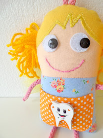 Когда у Василисы начали выпадать зубы, родилась идея вот такой зубной феи :) В кармашек кладём выпавший зуб, вешаем на кровать, а ночью прилетает зубная фея и на место зуба кладёт денежку. Правда-правда! Мы проверяли и уже не раз :)
